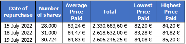 Brussels (Belgium), 20 July 2022 – 20:00 (CEST) – Regulated information