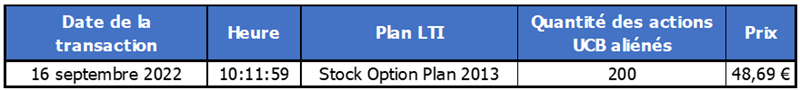 In accordance with article 8:6 of the Royal Decree executing the Belgian Code of Companies and Associations, UCB announces that, following exercises of stock options by members of its personnel, it has disposed of UCB shares OTC in view of deliveries of these shares to the relevant members of the personnel, within the framework of the Long-Term Incentive Program of the UCB Group, as follows: